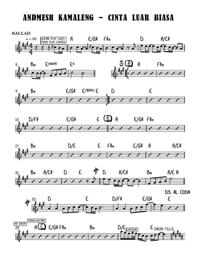 Pembeli hanya berhak menggunakan produk ini untuk kalangan sendiri dan tidak. Ad Download Sheet Music. Cinta luar biasa Andmesh cover pianoSolo piano cocok buat penghantar tidurBuat relaksasi otakMusik Solo piano bisa buat menemani hari anda lebih ceria lagi.